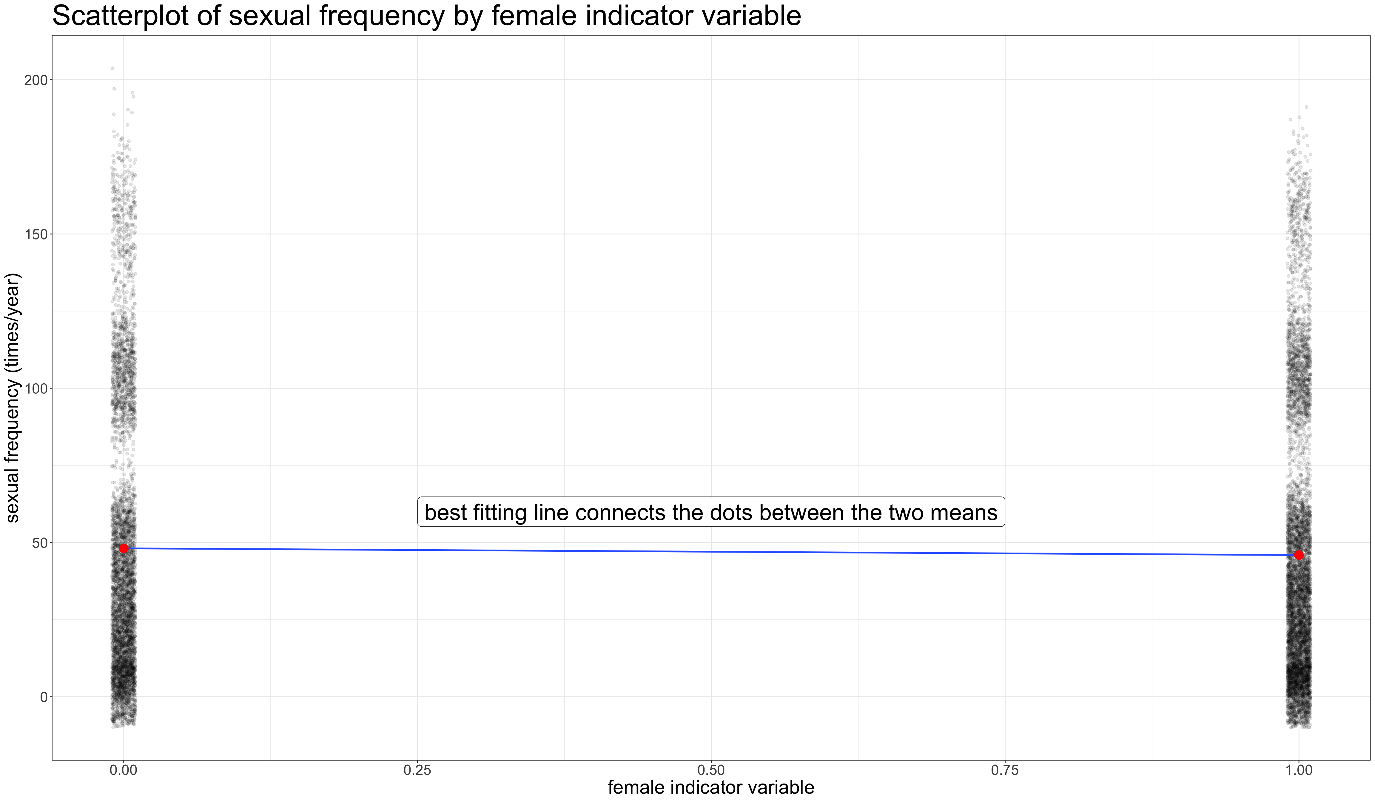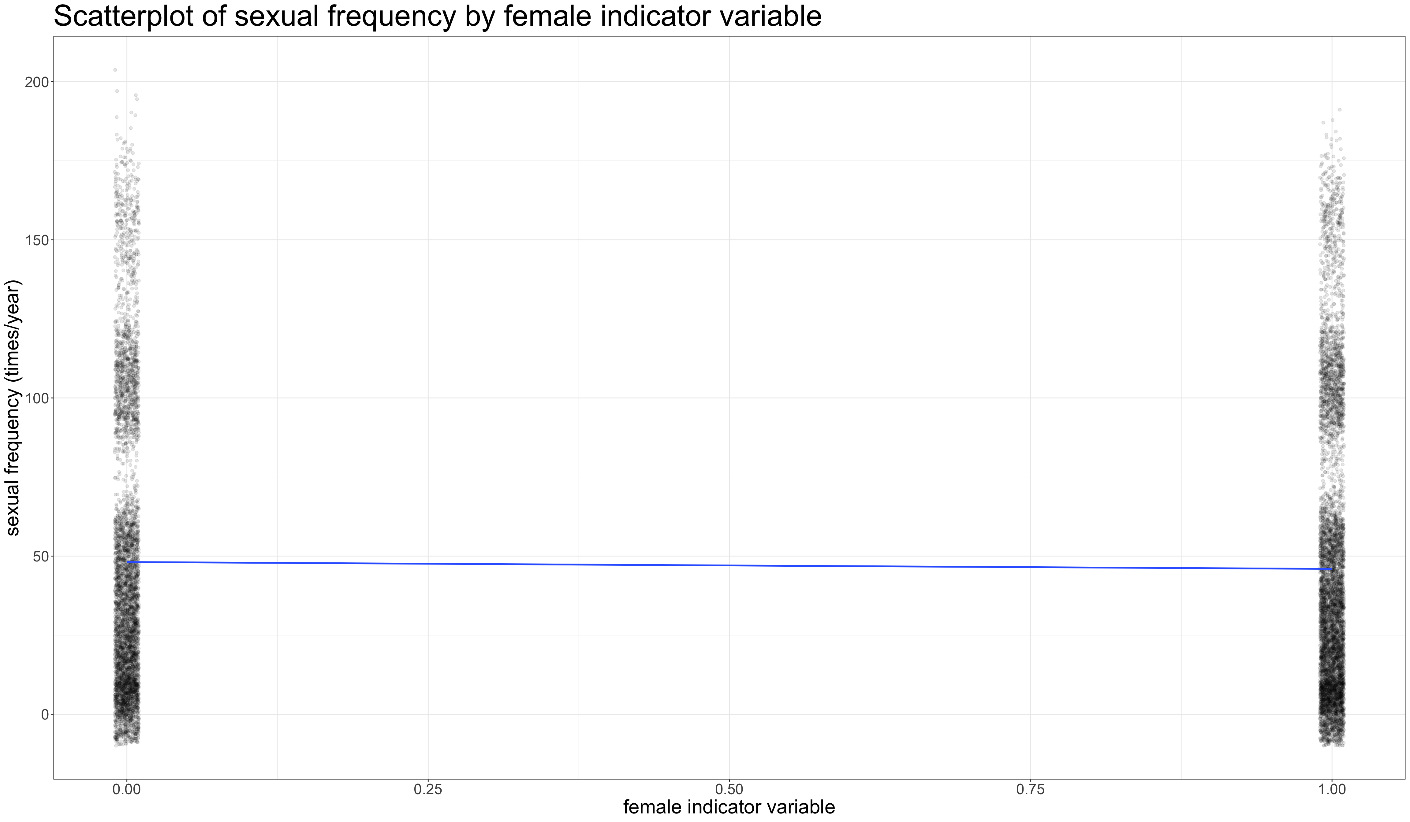 Try interpreting these numbers from a regression model where the dependent variable is sexual frequency (sexual encounters per year) and the independent variable is age in years.