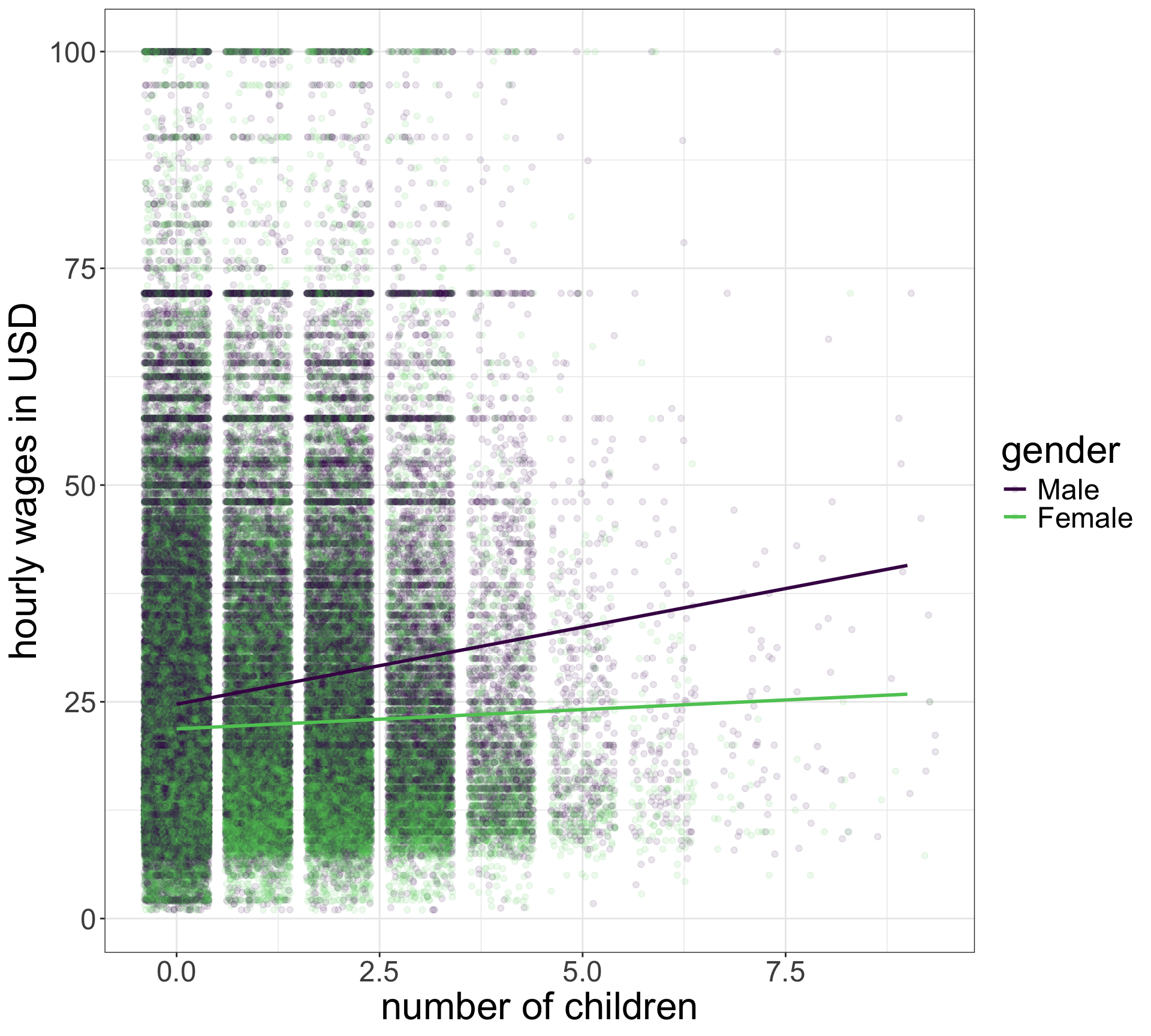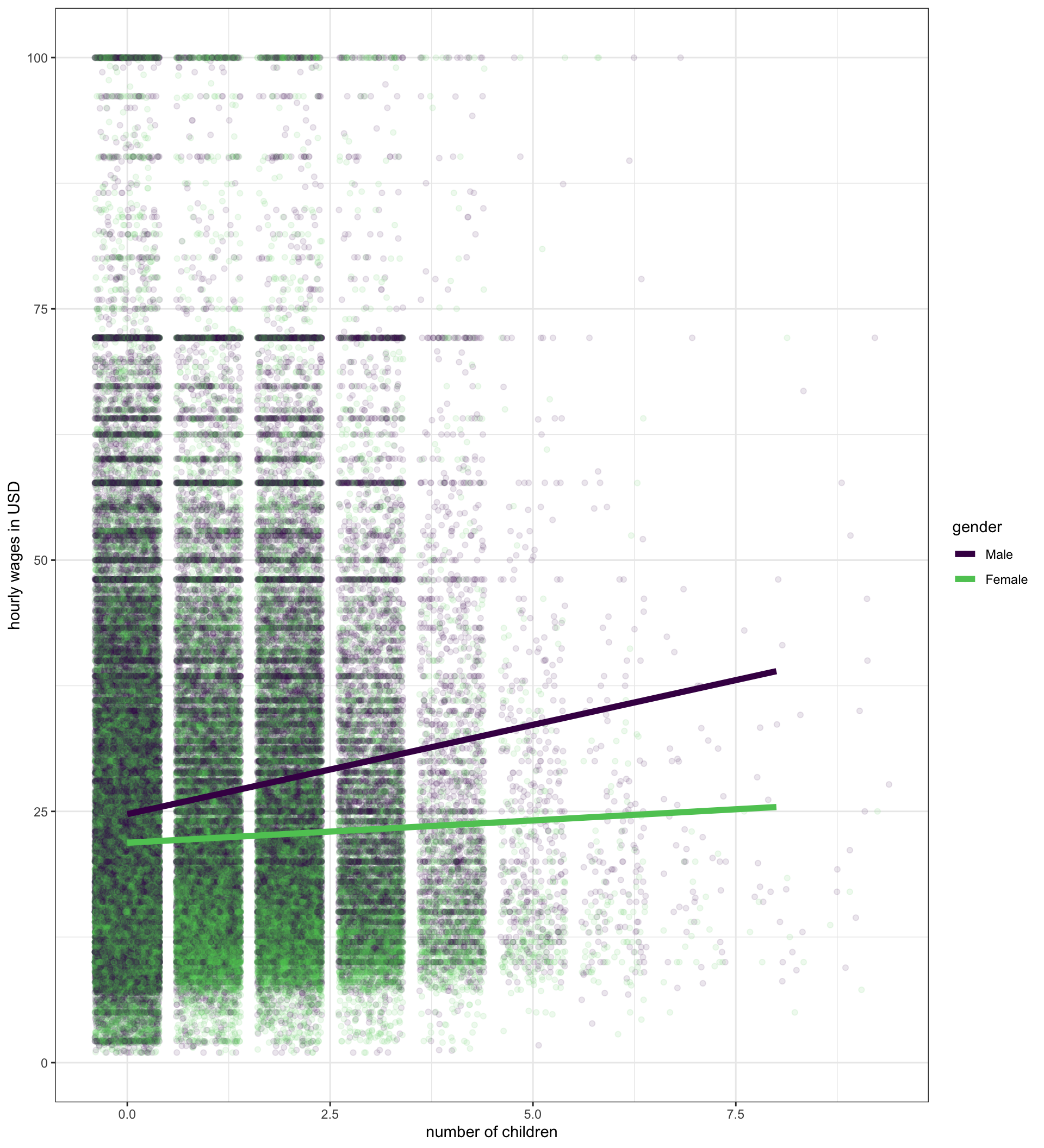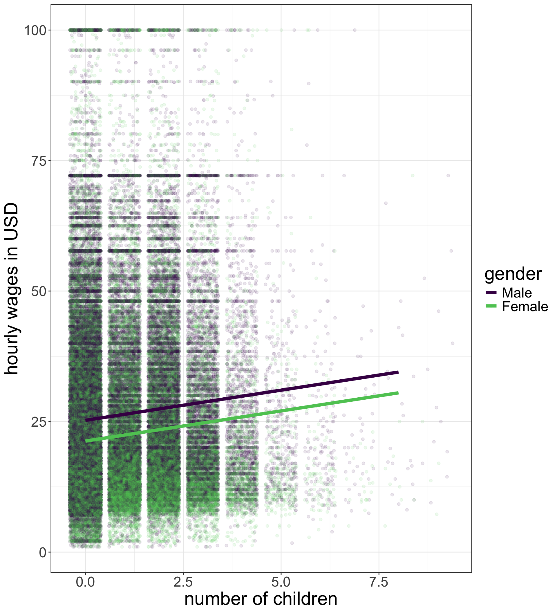 | Difference in men’s and women’s wages with no children | -$2.84 | |