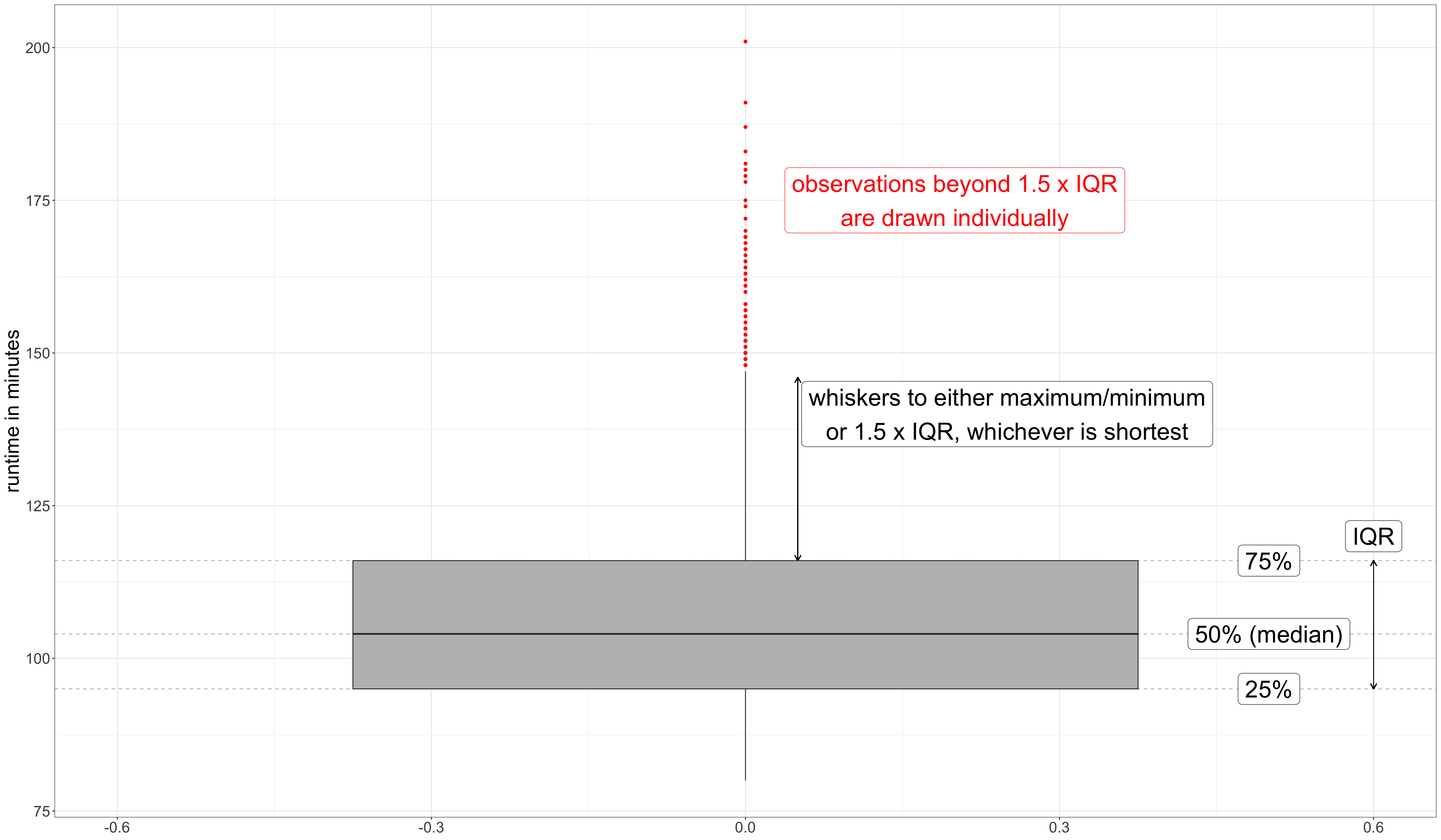 The 75th percentile of movie runtime is 21 minutes longer than the 25th percentile.