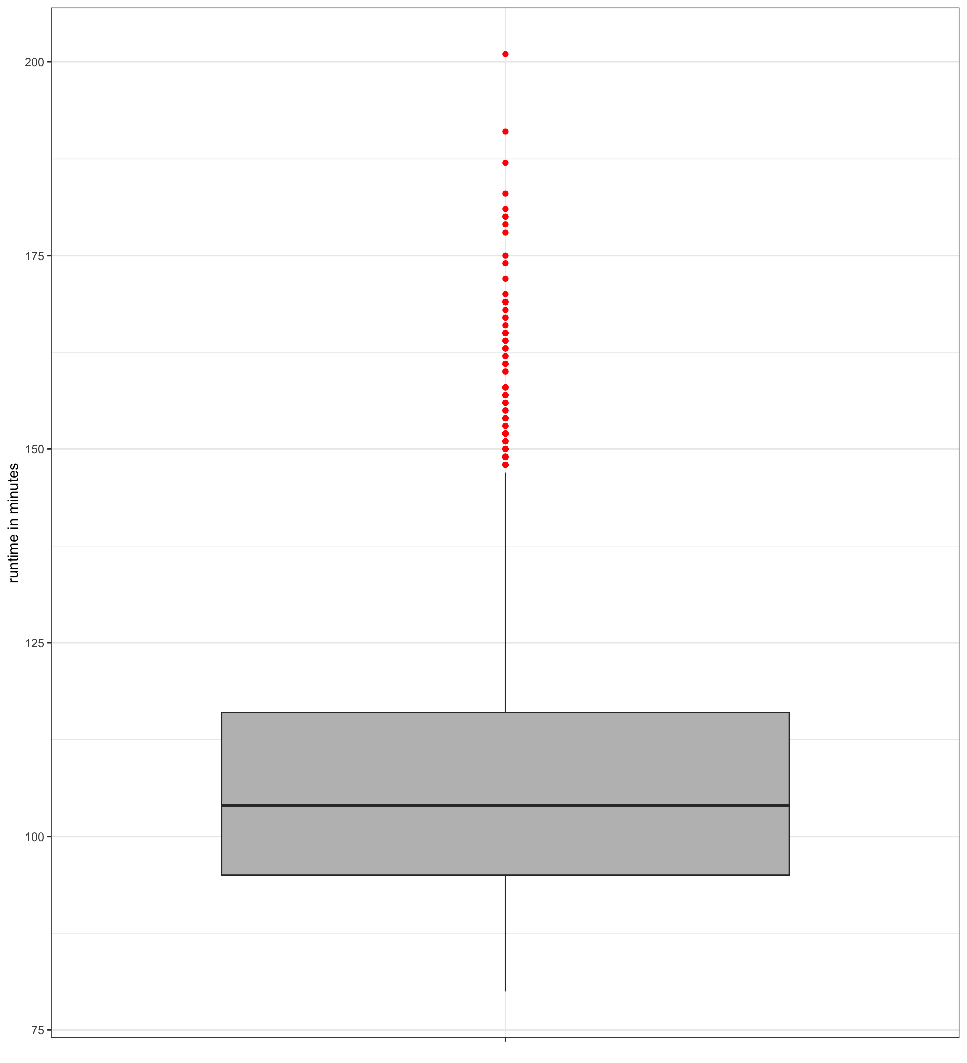 With an odd number of 4343 movies, the exact midpoint is the 2172nd movie. We can use the sort command to sort and then extract the 2172nd movie by using square brackets: